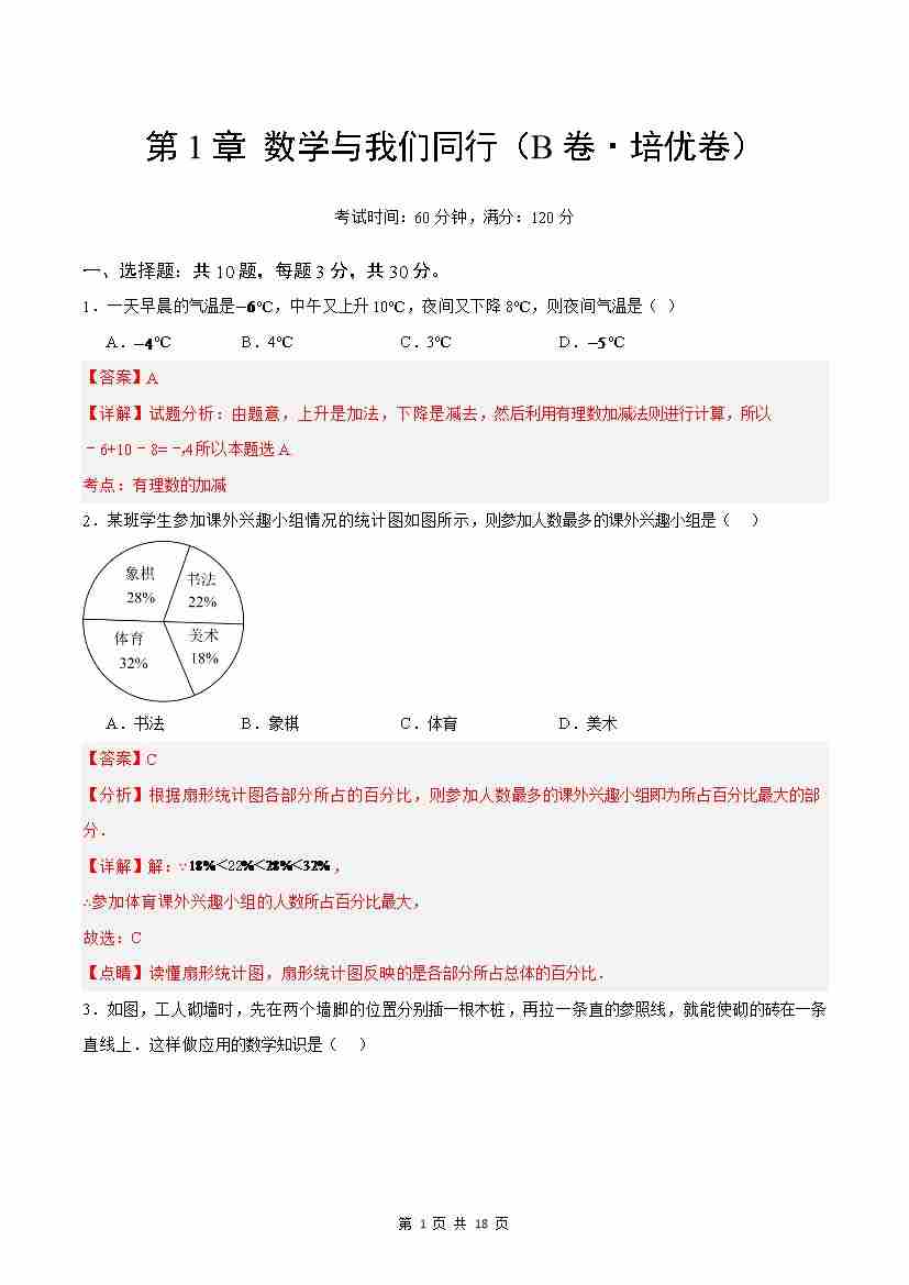 首页 > 全部 > 单元测试 > 第1章 数学与我们同行(B卷·培优卷 单元重点综合测试)(解析版)