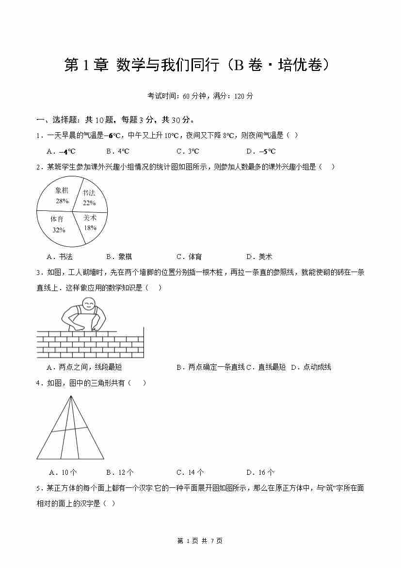 第1章 数学与我们同行(B卷·培优卷 单元重点综合测试)(原卷版)