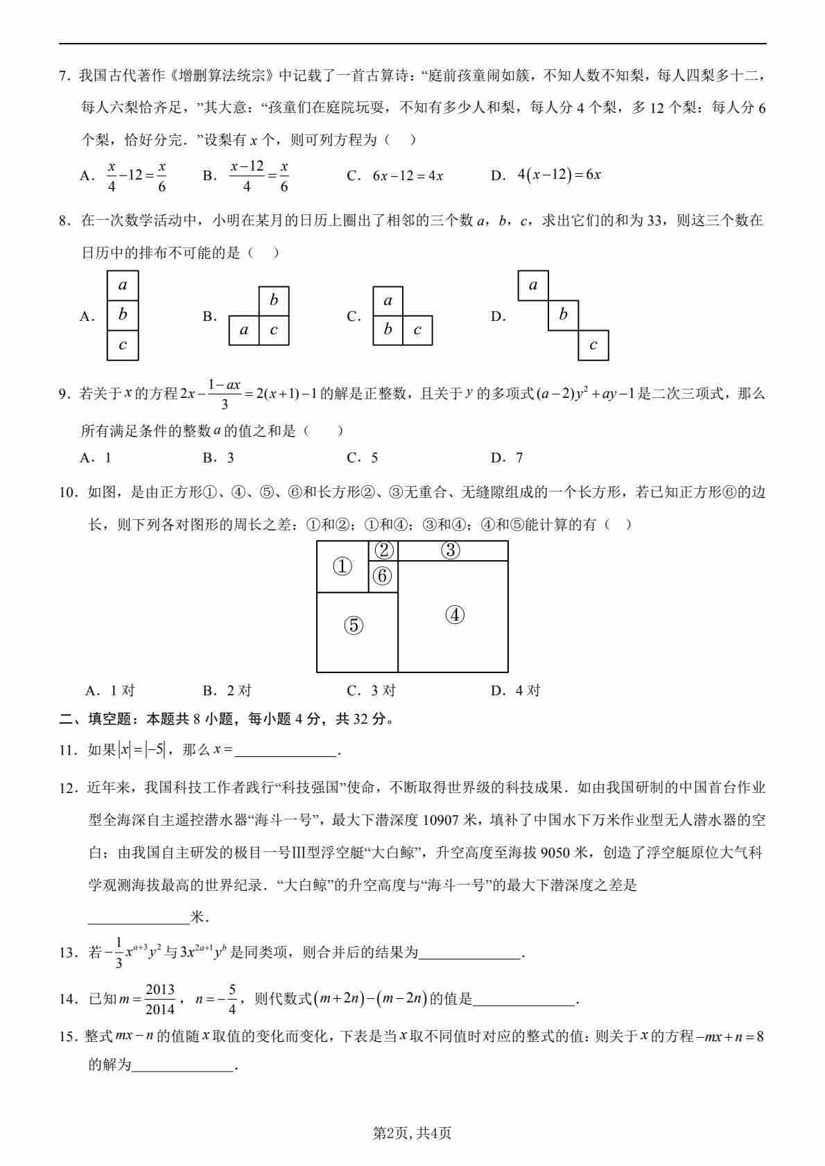 首页 > 全部 > 第三次月考 > 七年级苏科数学第三次月考卷(考试版)【测试范围:七上第1章-第4章】