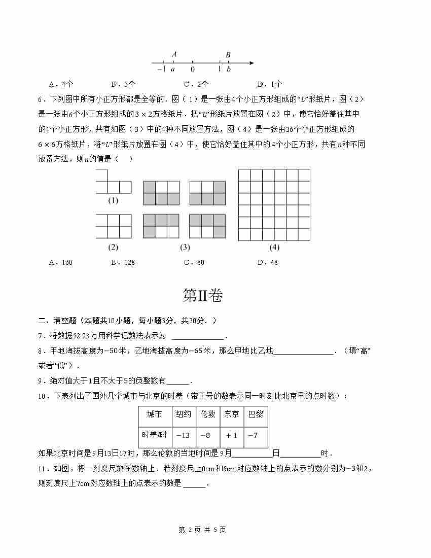 首页 > 全部 > 第一次月考 > 七年级数学第一次月考卷(苏科版2024)(考试版)【测试范围:第一章~第二章】