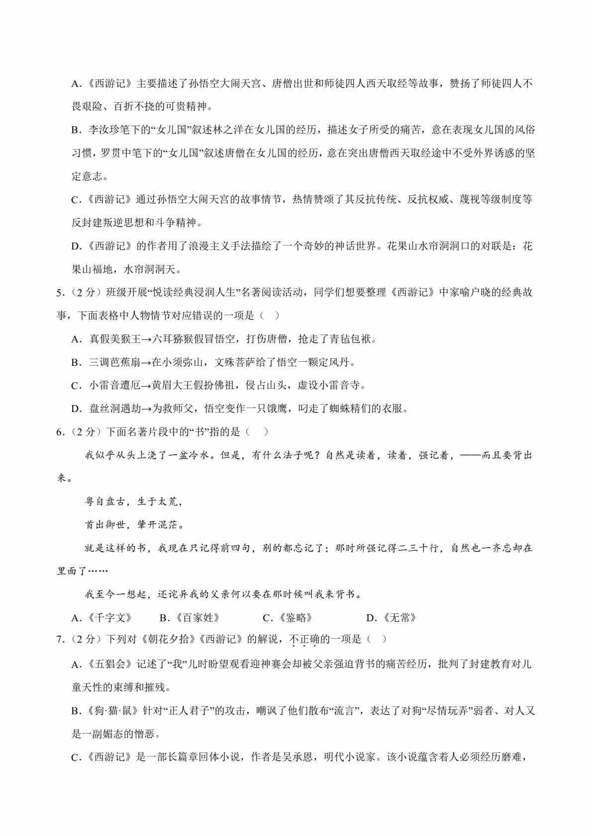 首页 > 全部 > 期末专项题 > 专题04 整本书阅读(《朝花夕拾》《西游记》)(考题猜想)(原卷版)