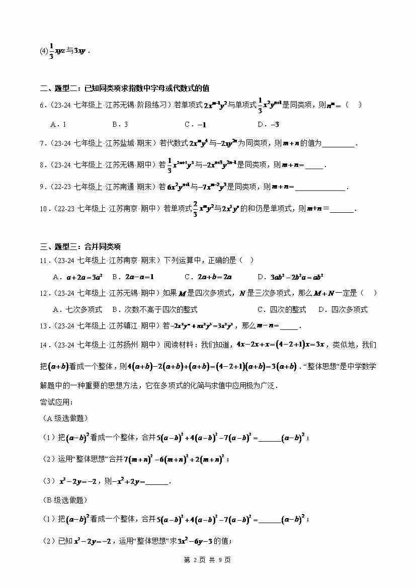 首页 > 全部 > 尖子生优培 > 专题12 整式的加减(八大题型,55题)(原卷版)