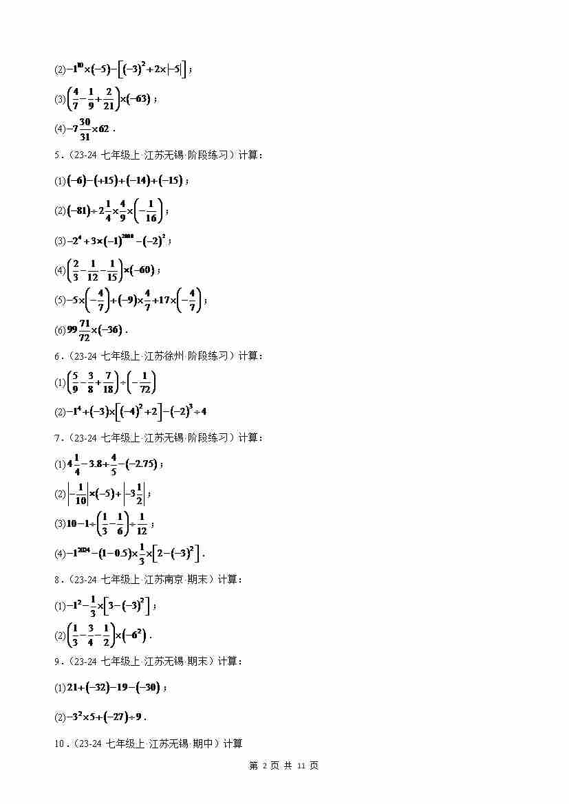首页 > 全部 > 尖子生优培 > 专题08 有理数的计算题(50题)(原卷版)