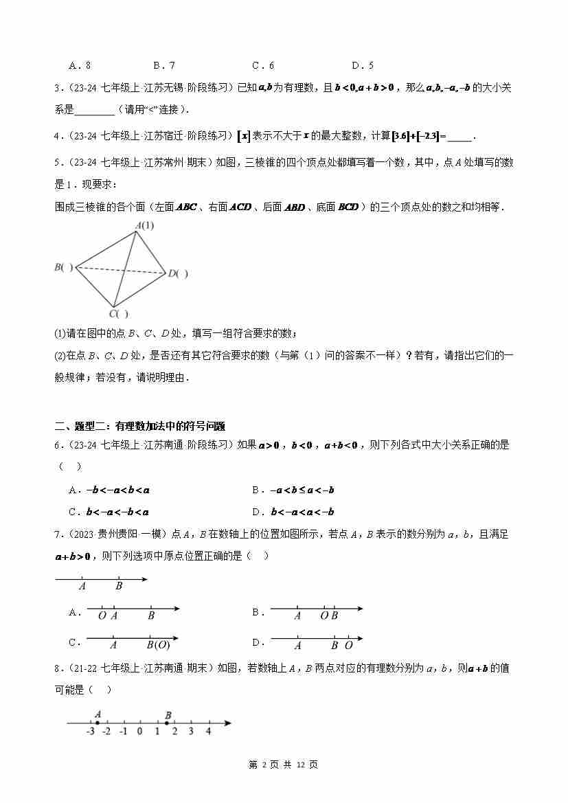 首页 > 全部 > 尖子生优培 > 专题04 有理数的加法与减法(九大题型,50题)(原卷版)