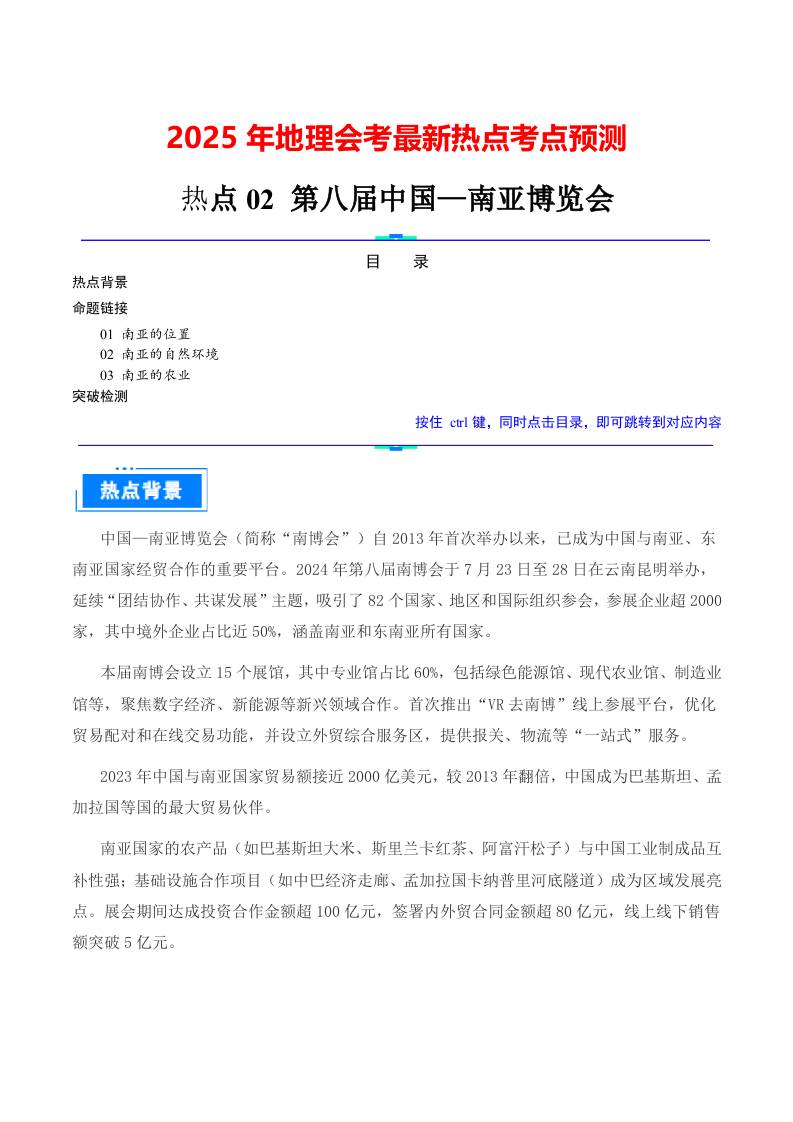 首页 > 全部 > 最新热点 > 热点02 第八届中国—南亚博览会-2025中考地理【热点】专练(全国通用)