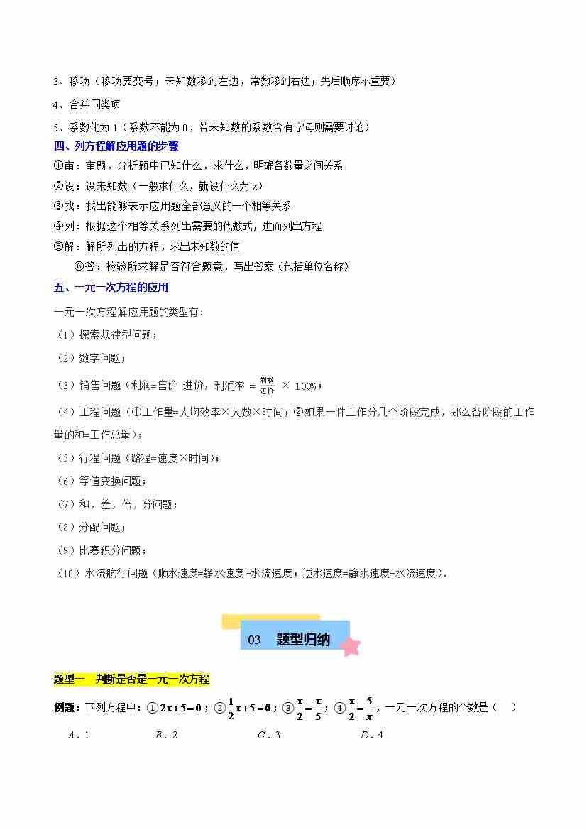 首页 > 全部 > 考点清单 > 第4章 一元一次方程知识归纳与题型突破(单元复习 8类题型清单)(解析版)
