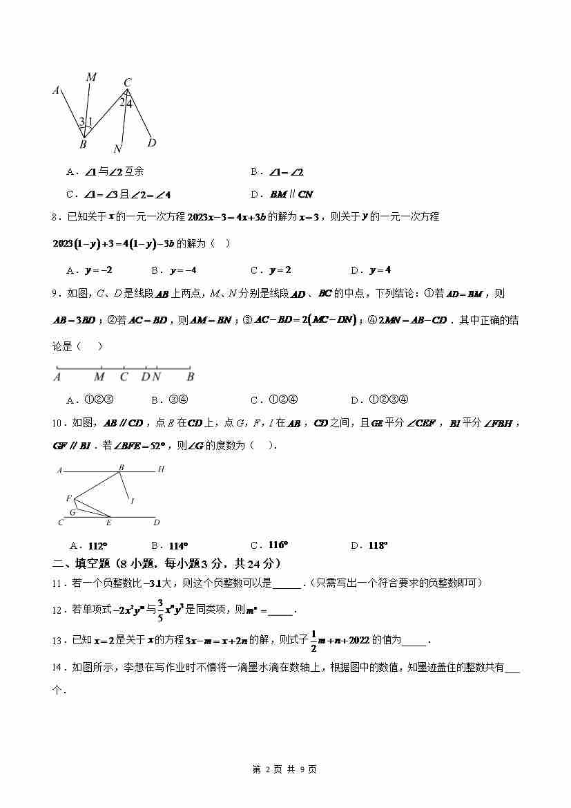 首页 > 全部 > 期末试卷 > 期末模拟卷(考试范围:七上全部内容)(原卷版)