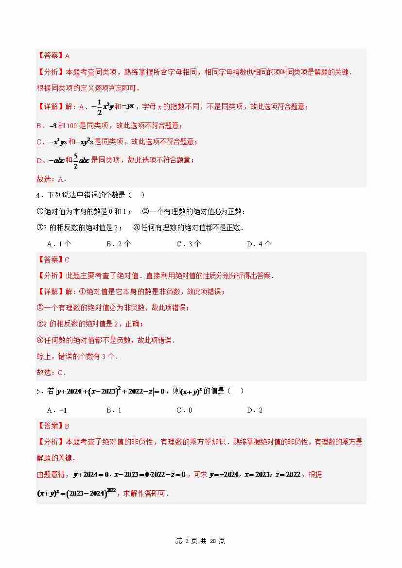 首页 > 全部 > 期中试卷 > 七年级上学期期中模拟卷01(考试范围:数学与我们同行、有理数、代数式)(解析版)