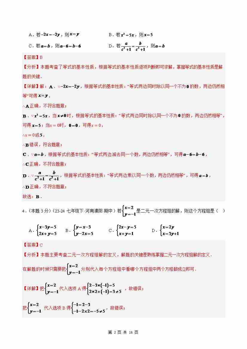 首页 > 全部 > 单元测试 > 第3章 一次方程(组)(单元重点综合测试)(解析版)