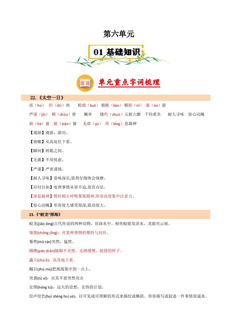 首页 > 全部 > 知识梳理 > 6.第六单元【速记清单】-2024-2025学年七年级语文下册单元速记·巧练(统编版2024)