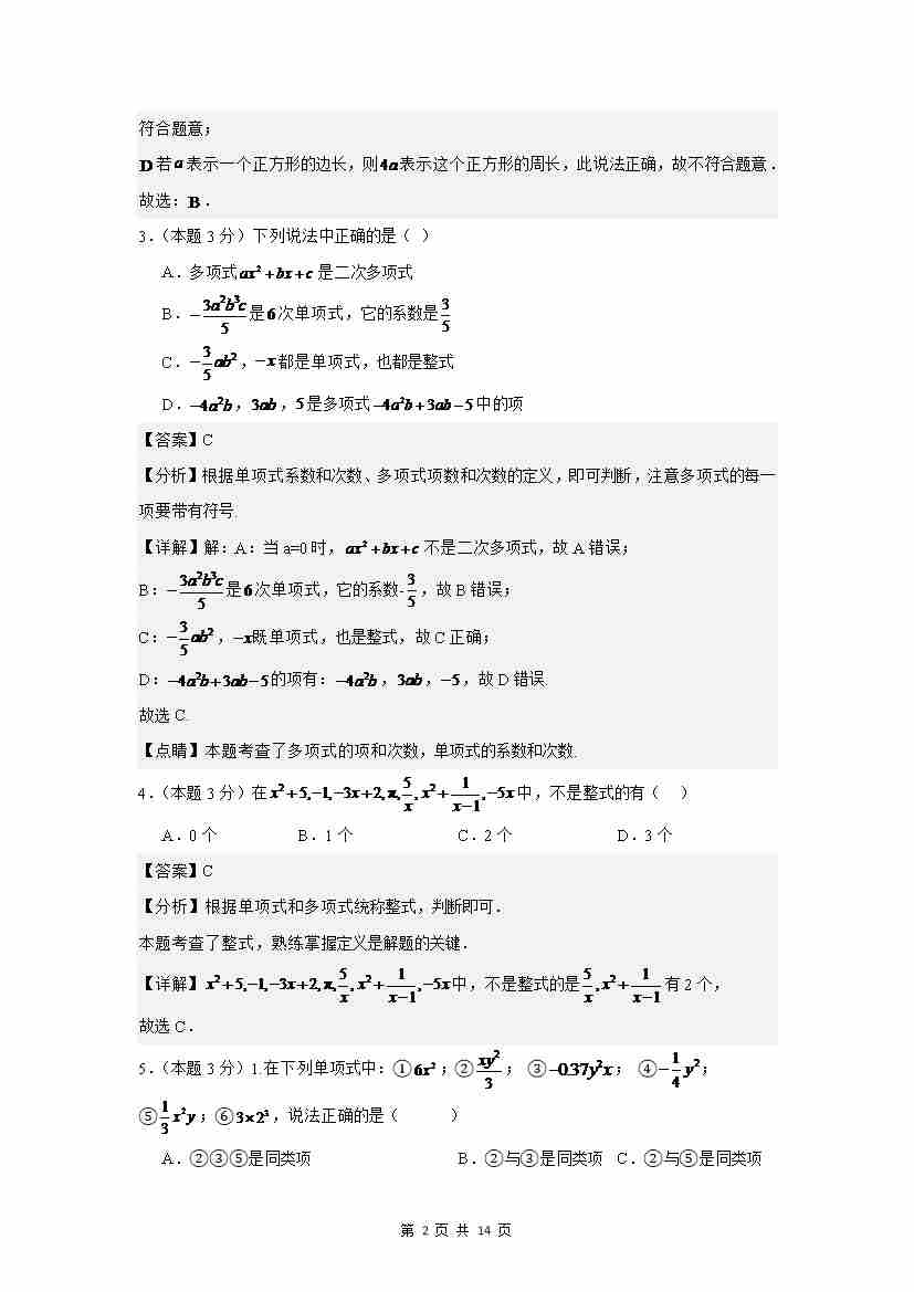 首页 > 全部 > 单元测试 > 第2章代数式(单元测试)(解析版)