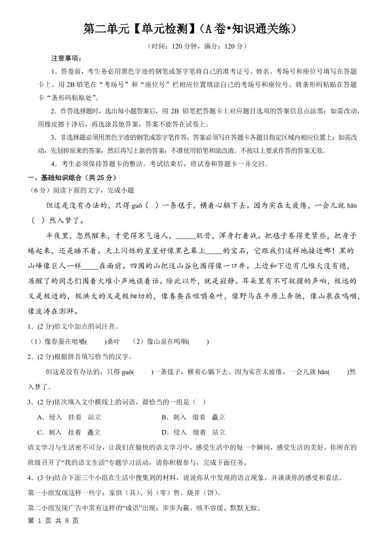 首页 > 全部 > 单元通关卷 > 4.第二单元【单元检测】(A卷•知识通关练)(原卷版)