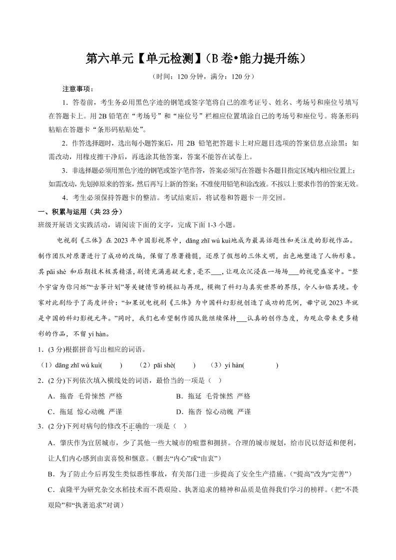 首页 > 全部 > 单元提升卷 > 12.第六单元【单元检测】(B卷•能力提升练)(解析版)