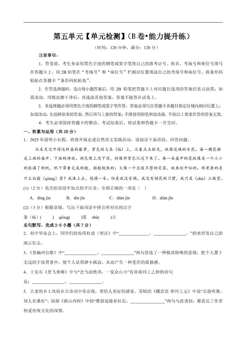 首页 > 全部 > 单元提升卷 > 9.第五单元【单元检测】(B卷•能力提升练)(原卷版)