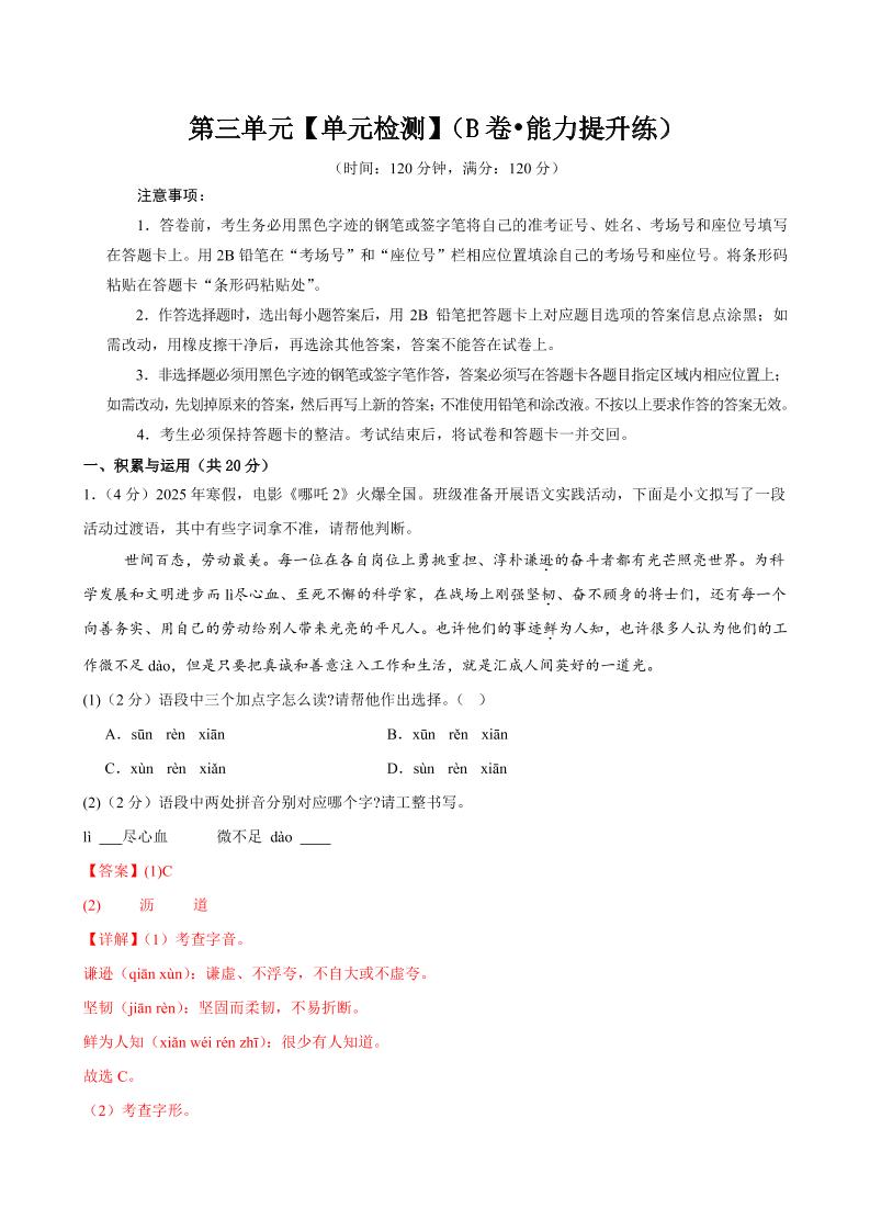 首页 > 全部 > 单元提升卷 > 5.第三单元【单元检测】(B卷•能力提升练)(解析版)