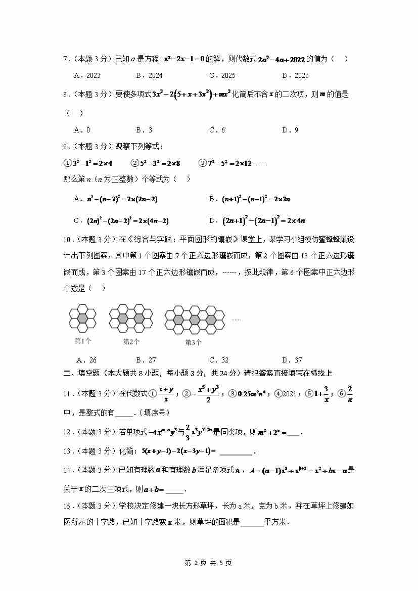 首页 > 全部 > 单元测试 > 第2章 代数式(单元重点综合测试,湘教版)(原卷版)