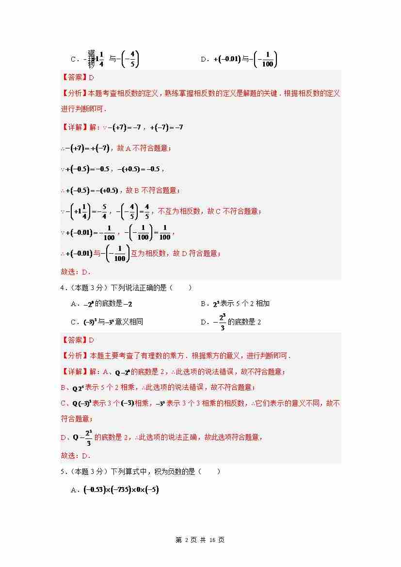 首页 > 全部 > 单元测试 > 第1章 有理数(单元重点综合测试,湘教版)(解析版)