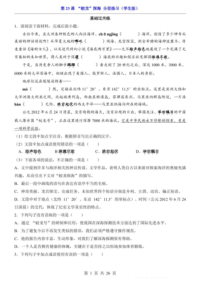 首页 > 全部 > 一课一练 > 第23课 “蛟龙”探海(分层练习)