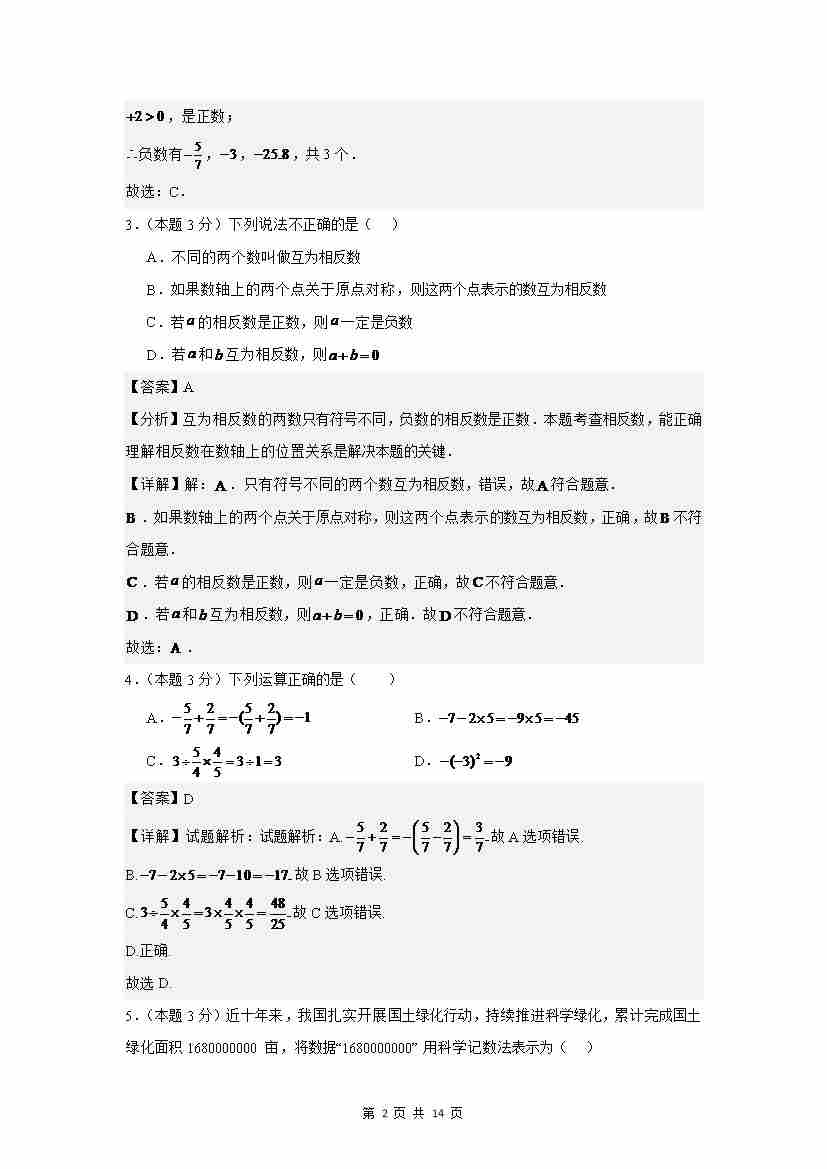 首页 > 全部 > 单元测试 > 第1章 有理数(单元测试)(解析版)