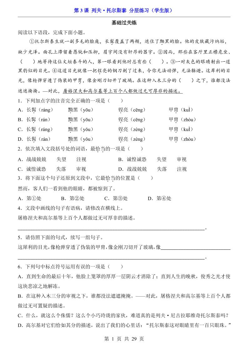 首页 > 全部 > 一课一练 > 第3课 列夫·托尔斯泰(分层练习)