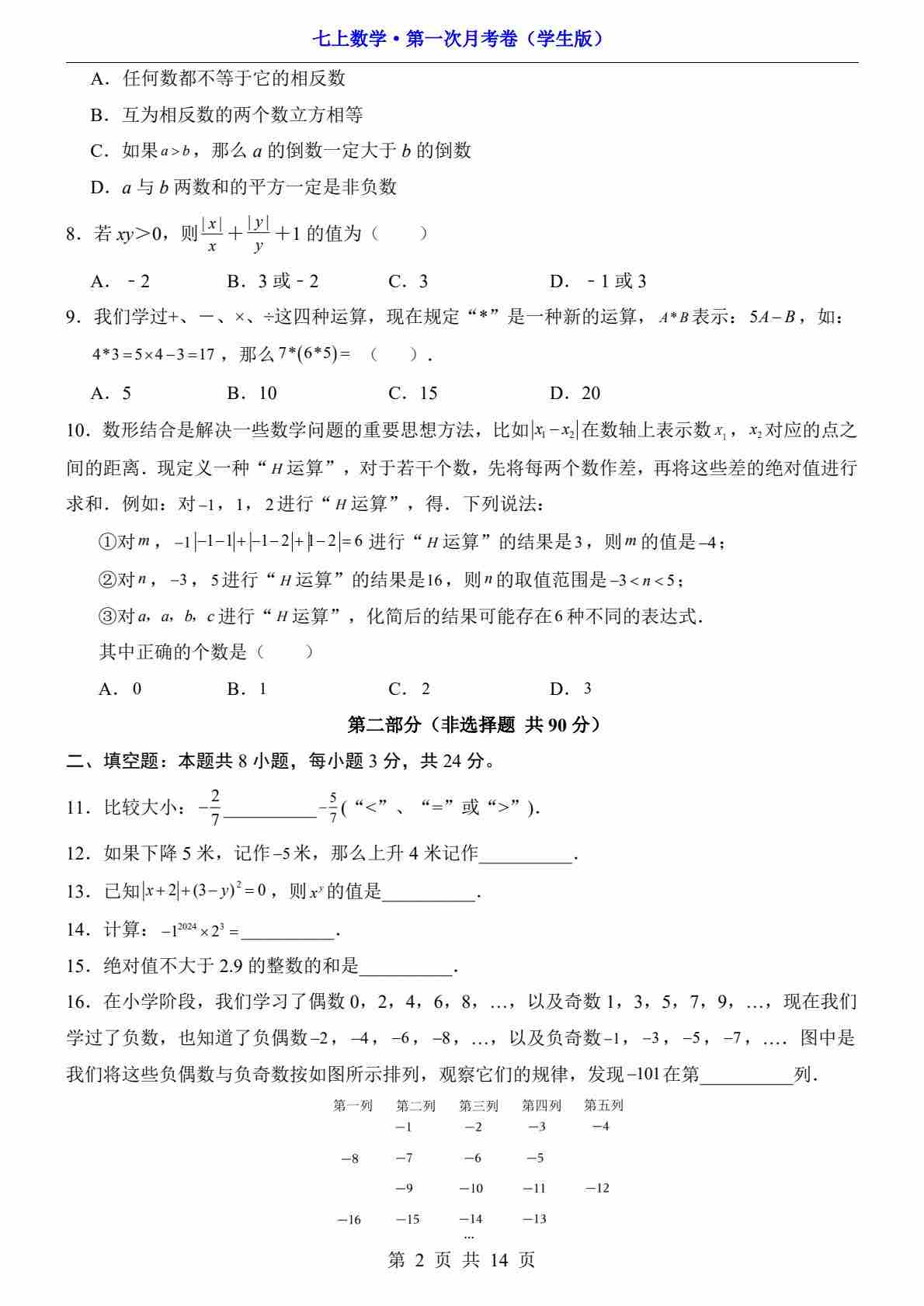 首页 > 全部 > 第一次月考 > 【湘教】7上数学第1次月考【第1章】