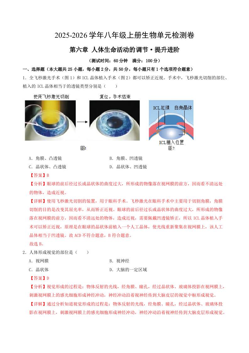 首页 > 全部 > 单元提升卷 > 第四单元第六章 人体生命活动的调节(单元测试·提升卷)(解析版)