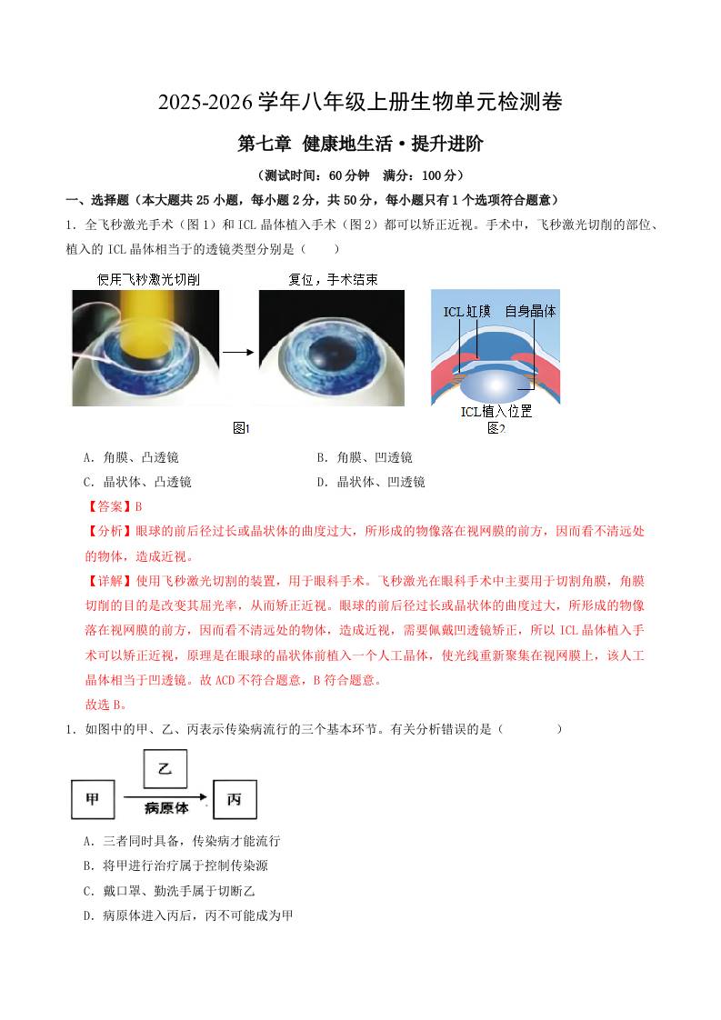 首页 > 全部 > 单元提升卷 > 第四单元第七章 健康地生活(单元测试·提升卷)(解析版)