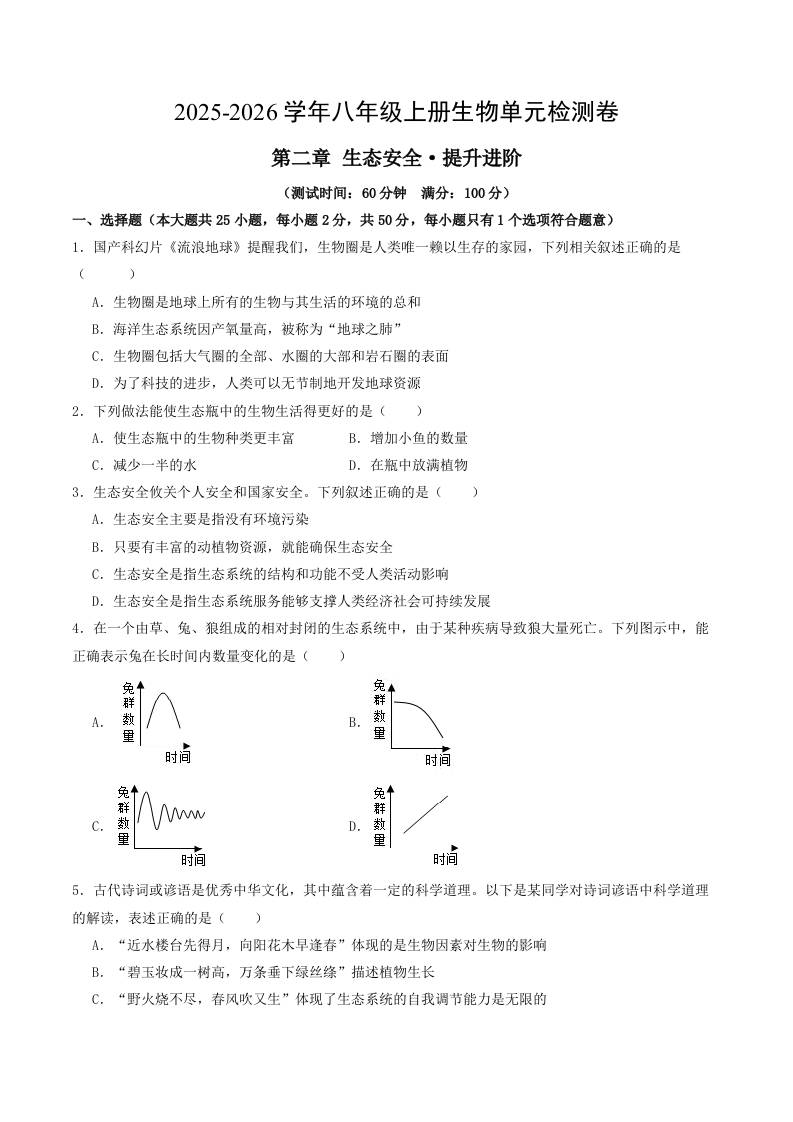 首页 > 全部 > 单元提升卷 > 第五单元第二章 生态安全(单元测试·提升卷)(考试版A4)