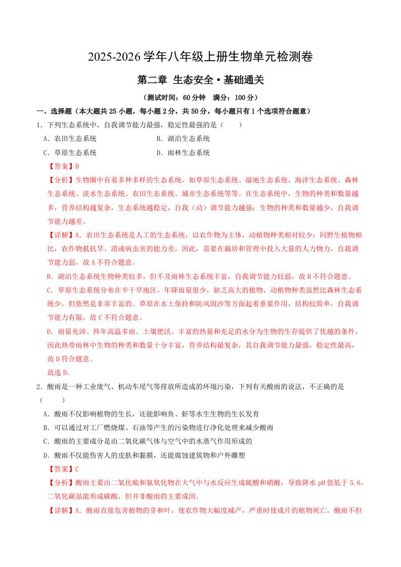 首页 > 全部 > 单元基础卷 > 第五单元第二章 生态安全(单元测试·基础卷)(解析版)
