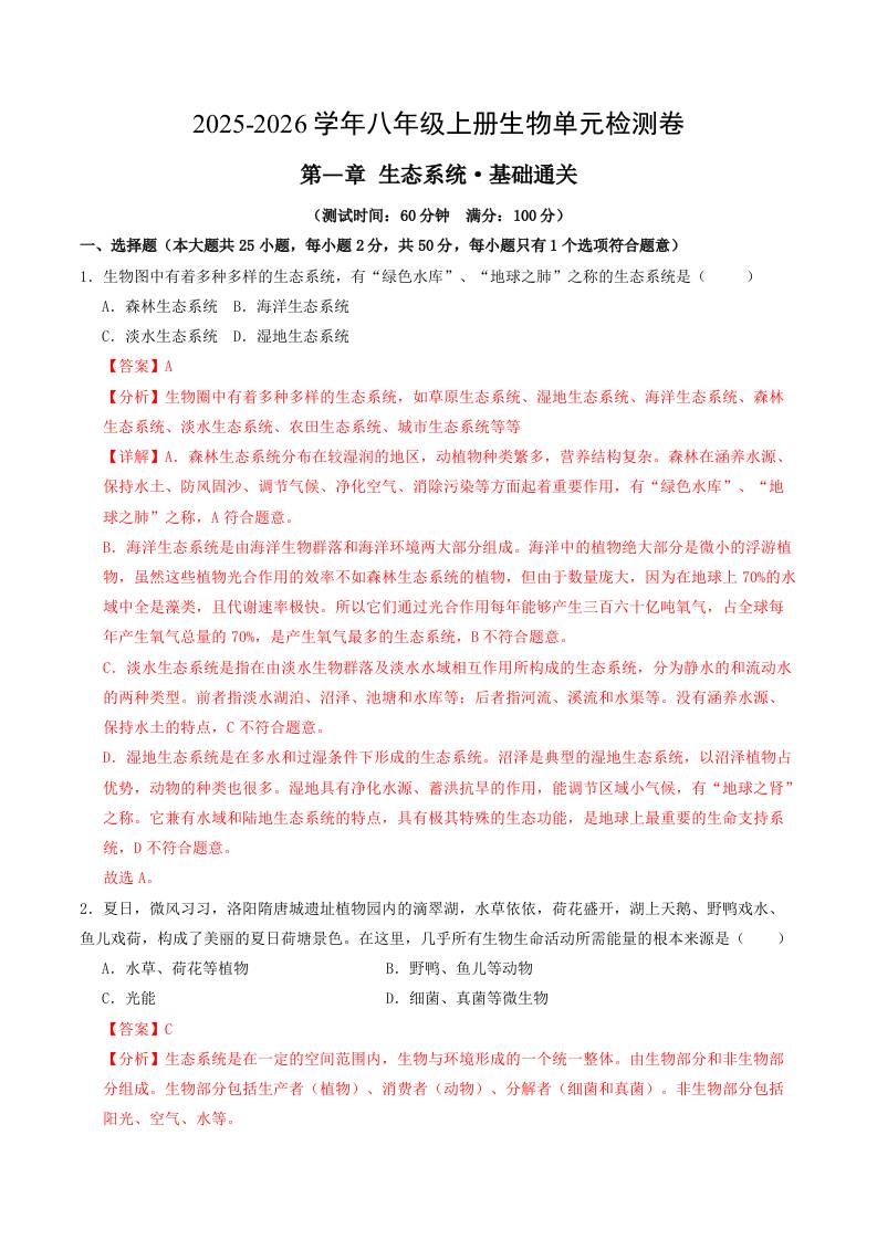 首页 > 全部 > 单元基础卷 > 第五单元第一章 生态系统(单元测试·基础卷)(解析版)