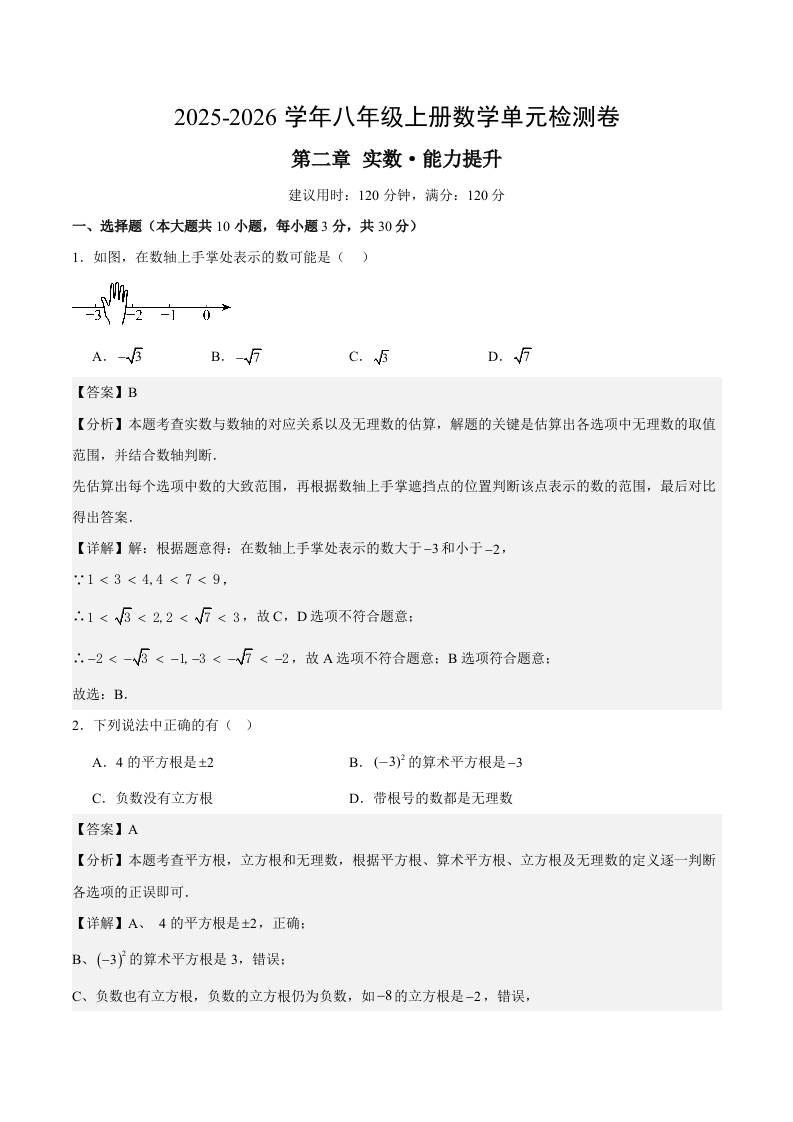 首页 > 全部 > 单元提升卷 > 3.第二章 实数测试·提升卷(解析版)