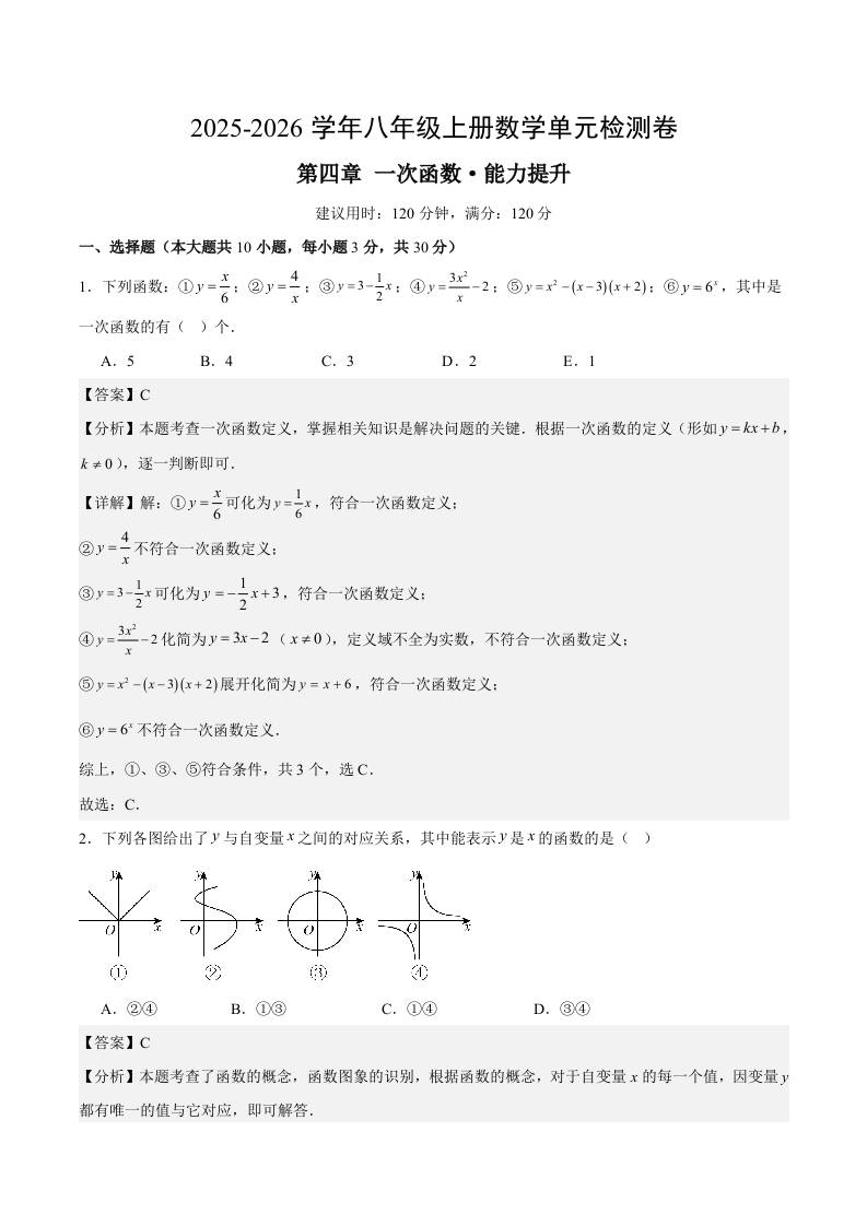 首页 > 全部 > 单元提升卷 > 八上数学第四章 一次函数测试·提升卷(解析版)