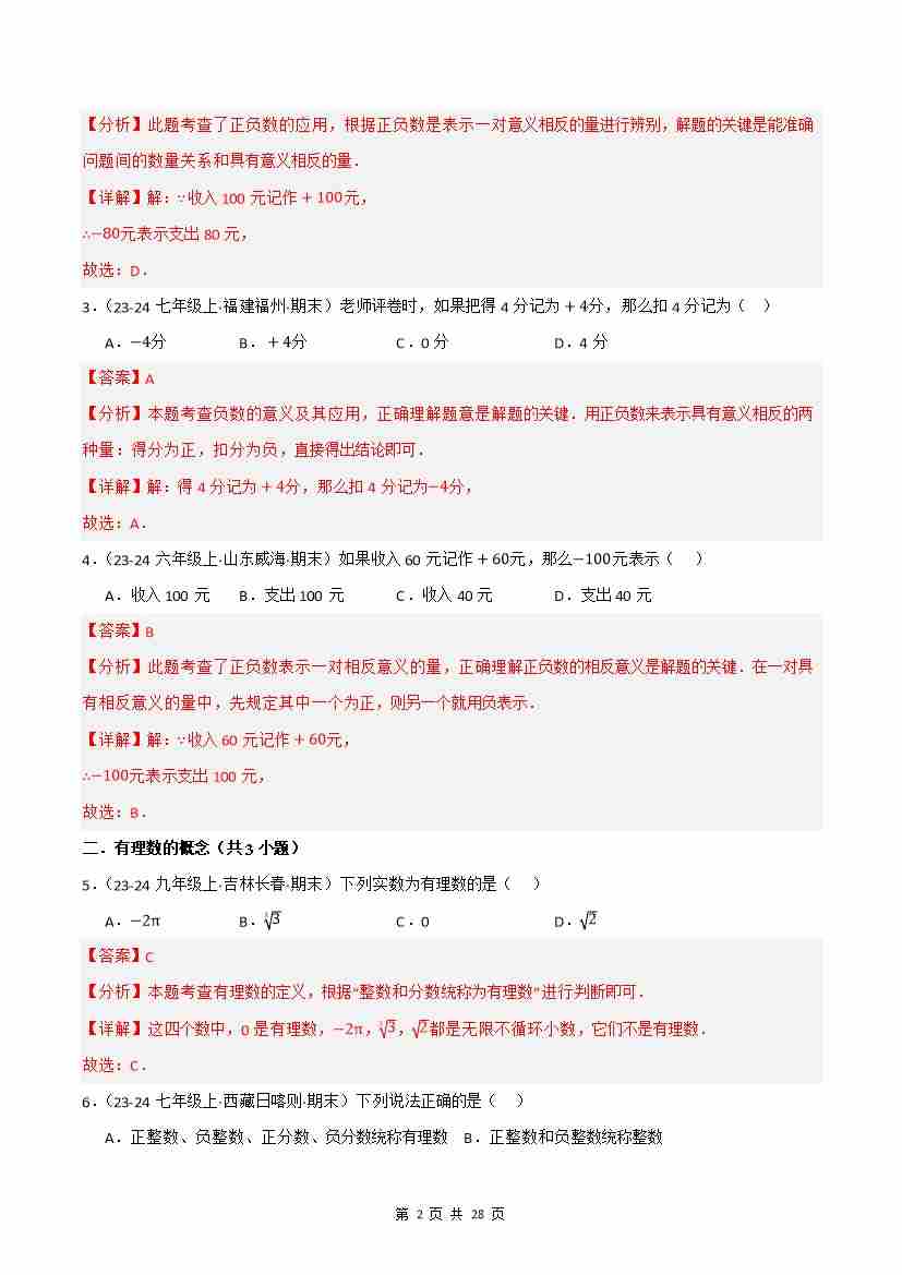 首页 > 全部 > 期末专项 > 专题01 有理数(考题猜想,易错必刷50题14种题型)(解析版)