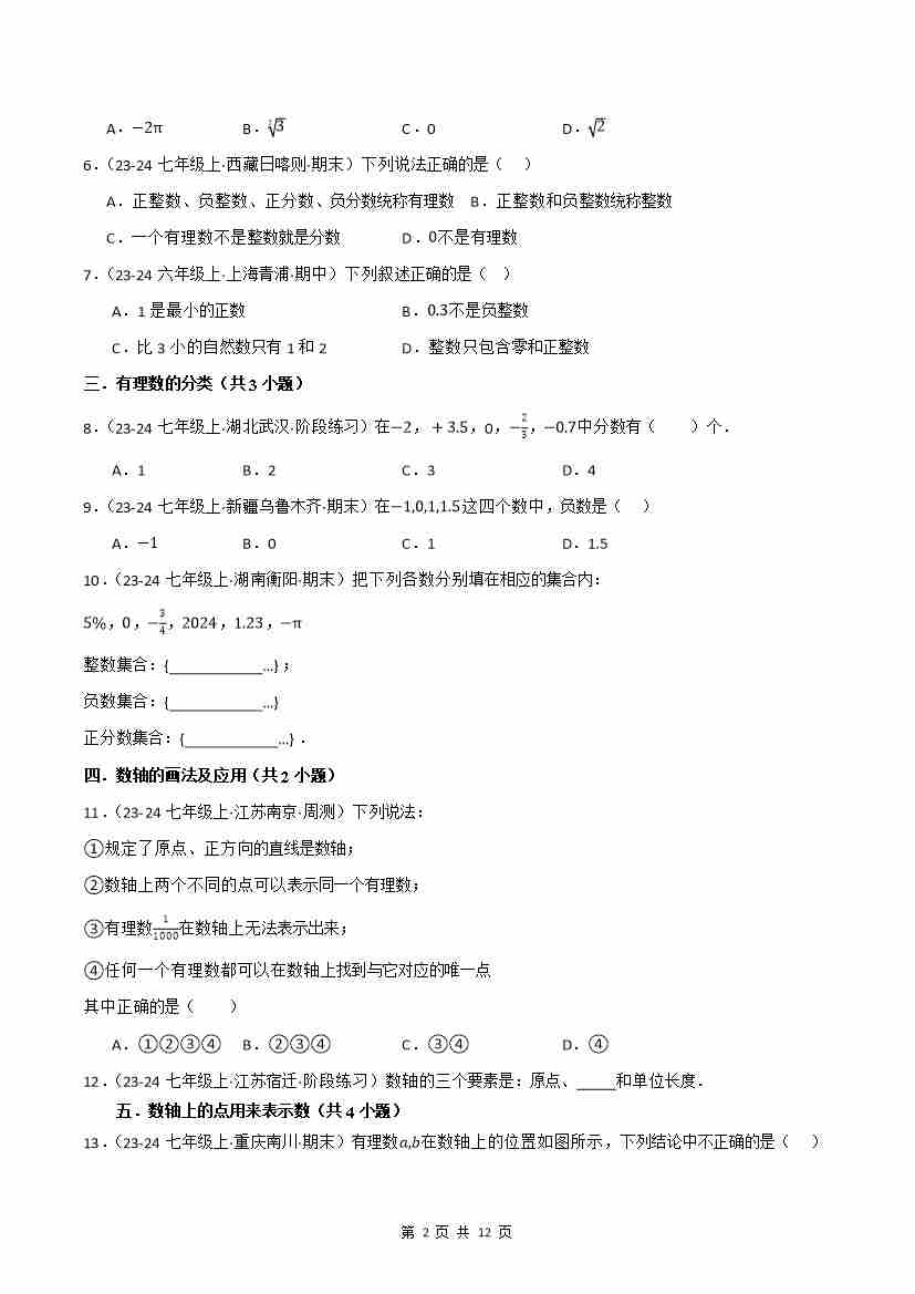 首页 > 全部 > 期末专项 > 专题01 有理数(考题猜想,易错必刷50题14种题型)(原卷版)
