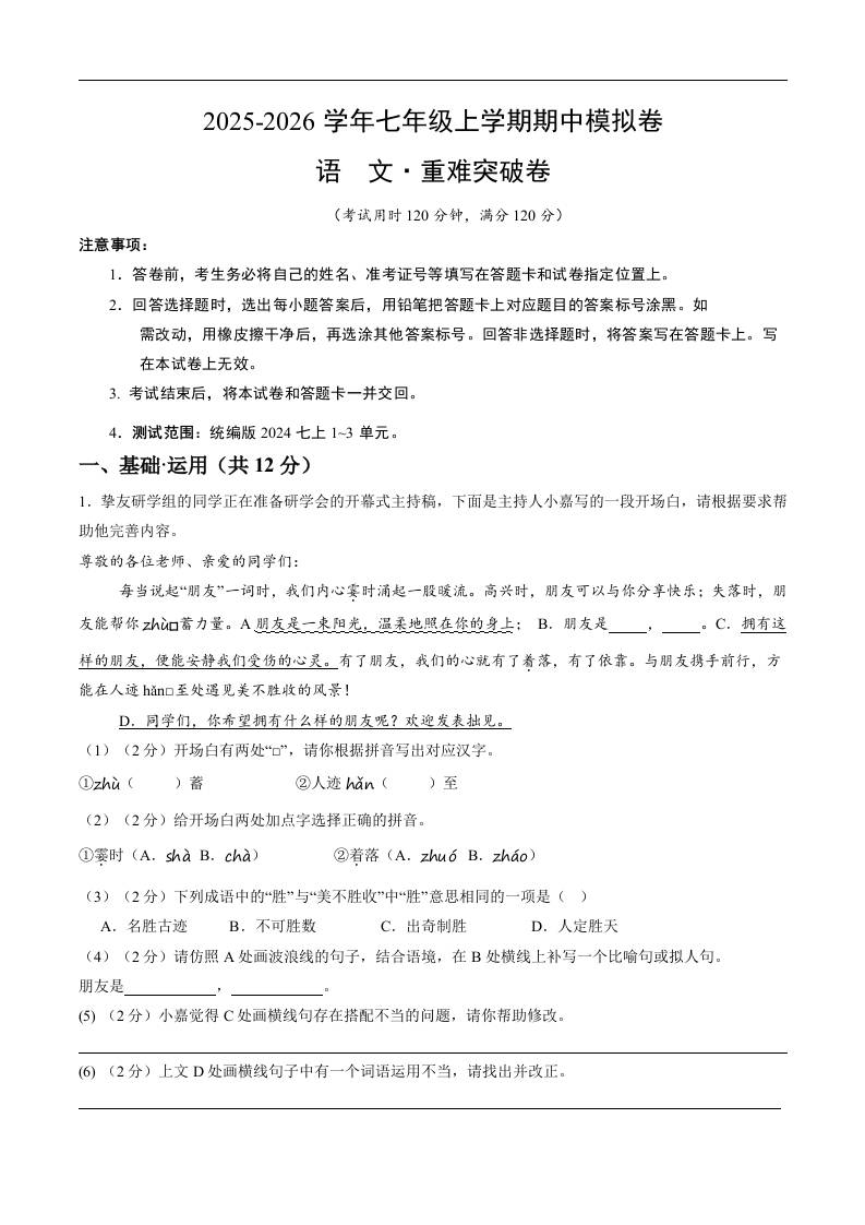 首页 > 全部 > 期中试卷 > 七年级语文期中模拟卷·重难突破卷(全解全析)(新教材统编版)