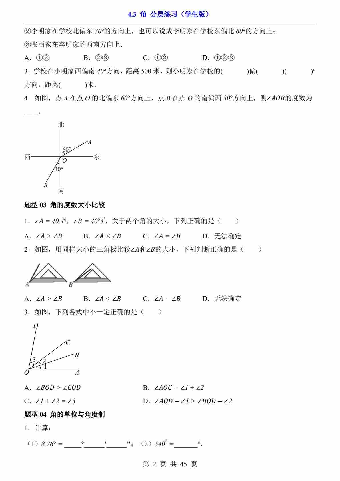 首页 > 全部 > 一课一练 > 4.3 角(分层练习)