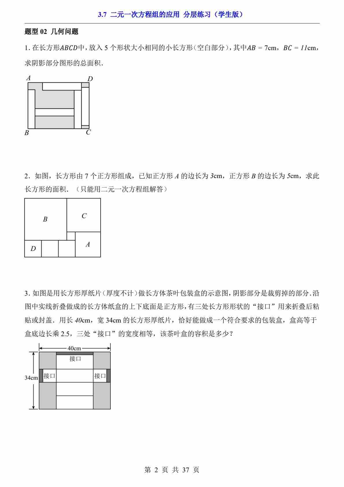 3.7 二元一次方程组的应用(分层练习)