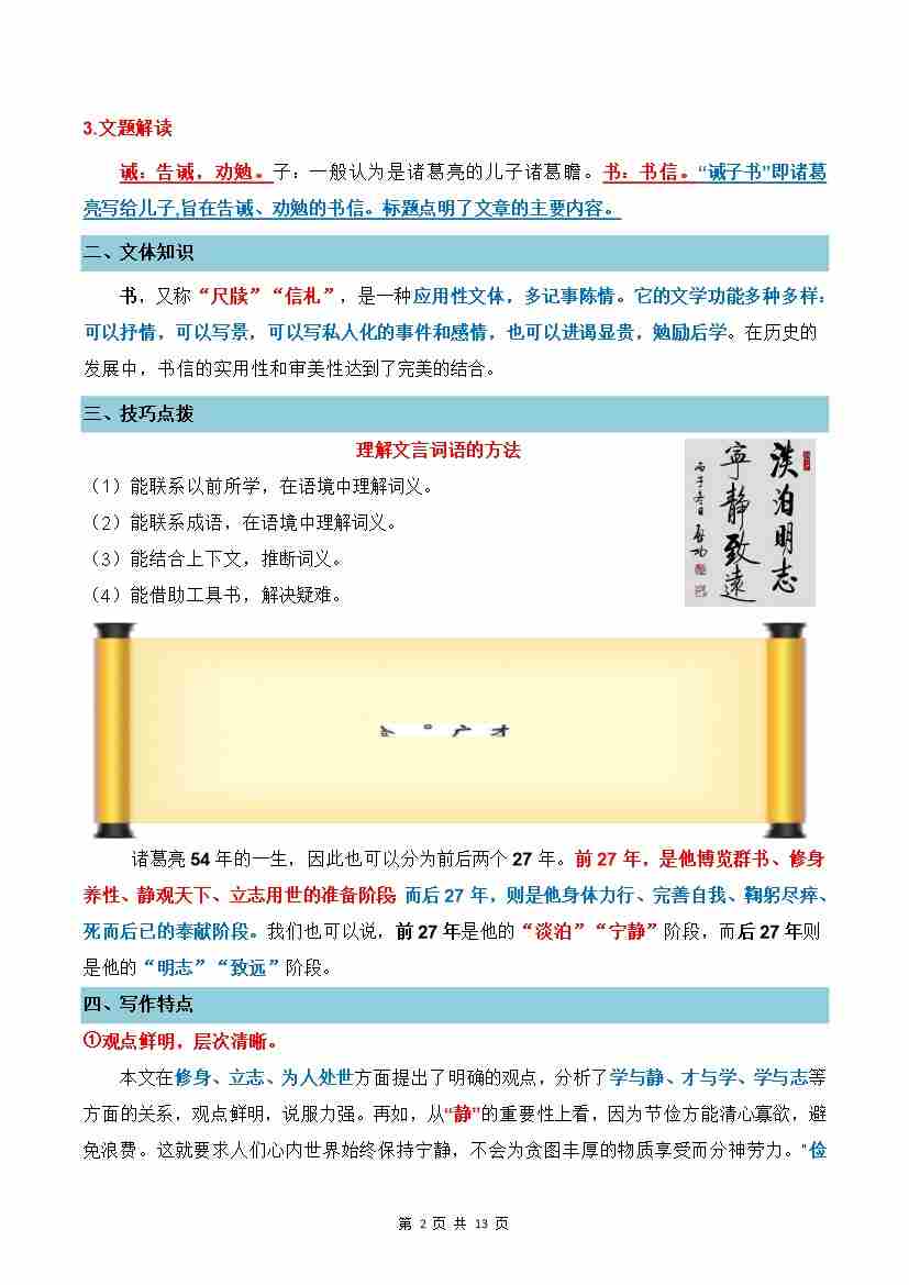 首页 > 全部 > 暑假自习课 > 第16课 诫子书(教师版)-2024年新七年级语文暑假预习课(统编版)