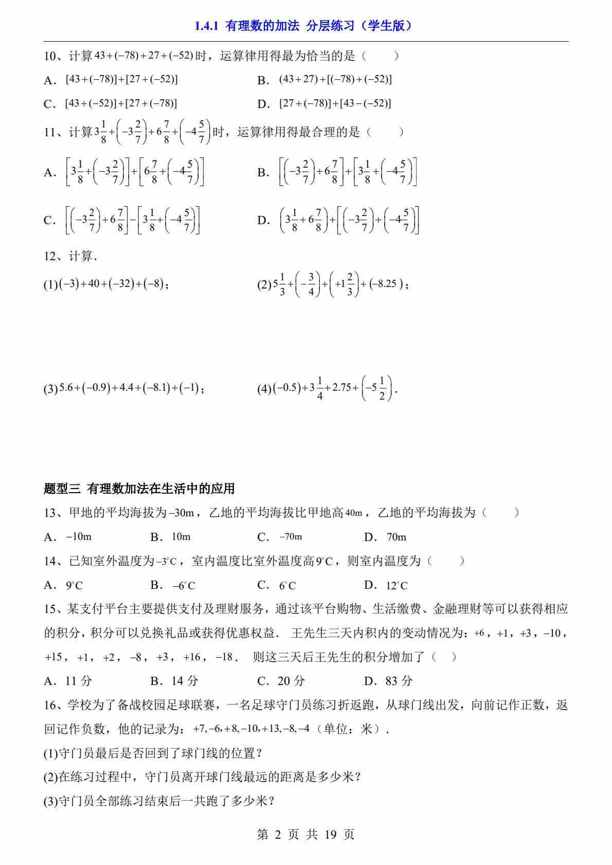 首页 > 全部 > 一课一练 > 1.4.1 有理数的加法(分层练习)
