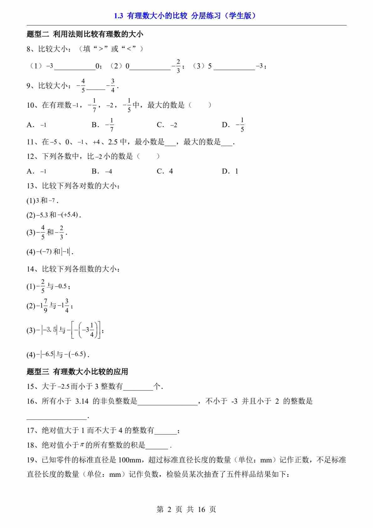 首页 > 全部 > 一课一练 > 1.3 有理数大小的比较(分层练习)
