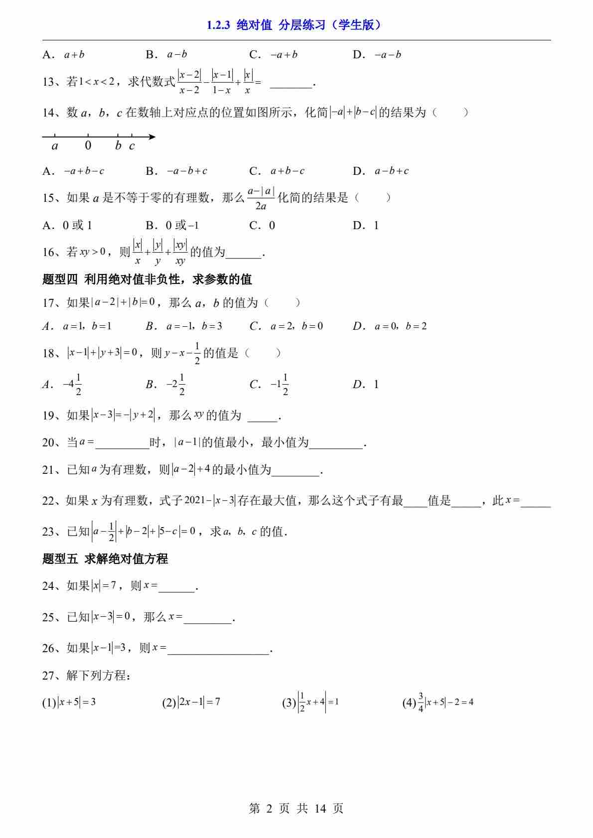 首页 > 全部 > 一课一练 > 1.2.3 绝对值(分层练习)