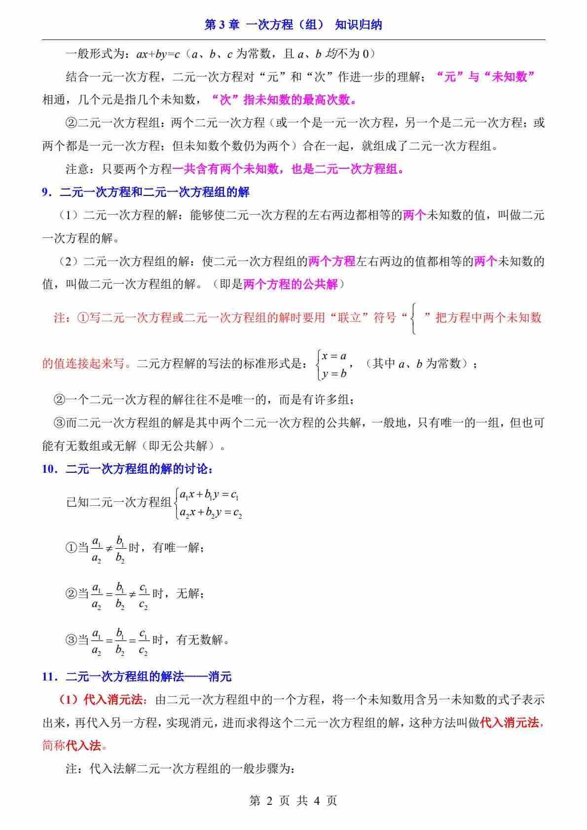 第3章 一次方程(组)(知识归纳)