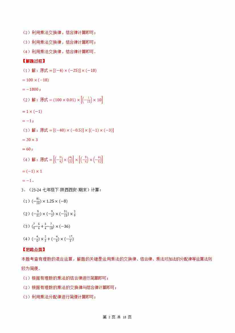 首页 > 全部 > 计算题专练 > 专题09 运用运算律简便运算(计算题专项训练)(湘教版2024)(解析版)