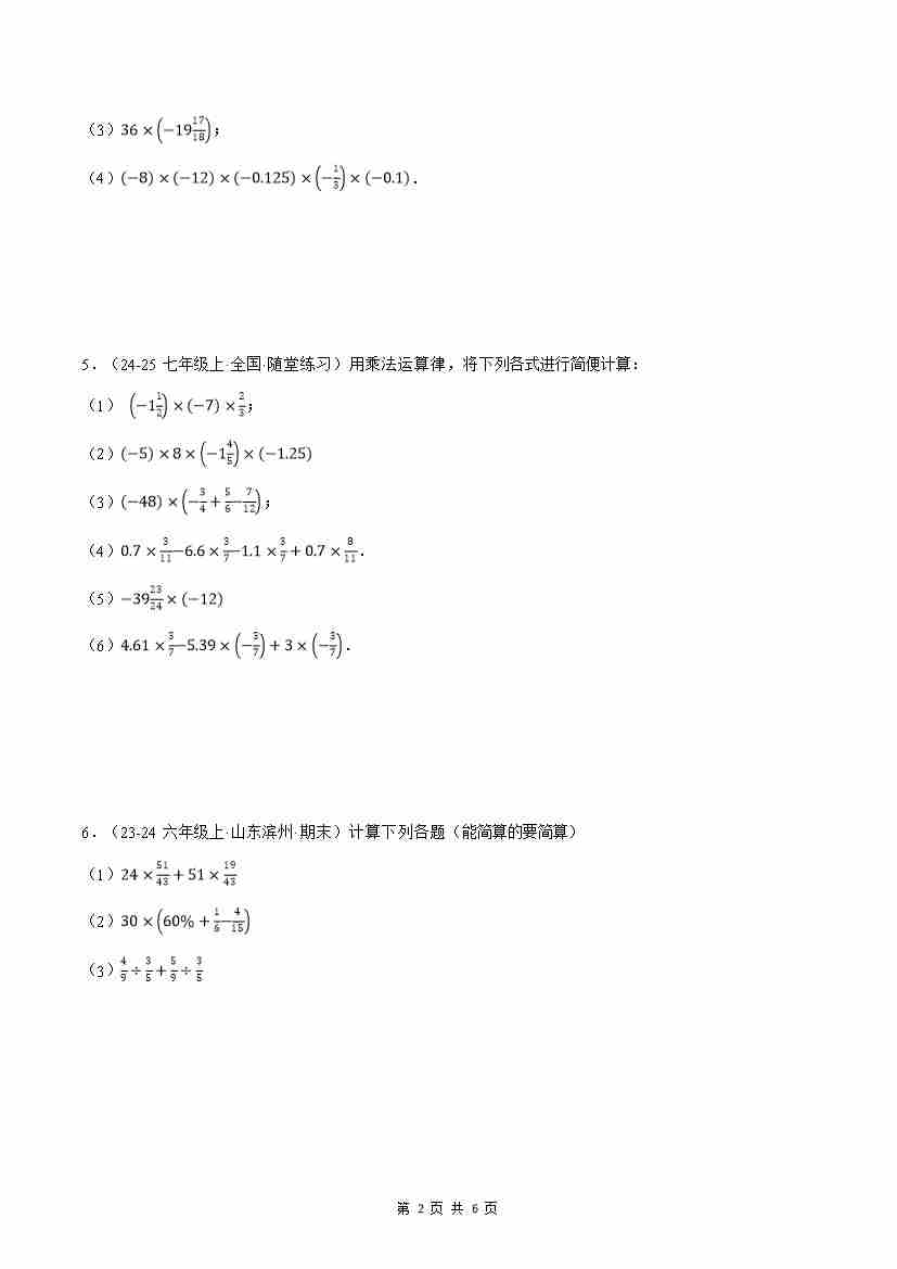 首页 > 全部 > 计算题专练 > 专题09 运用运算律简便运算(计算题专项训练)(湘教版2024)(原卷版)
