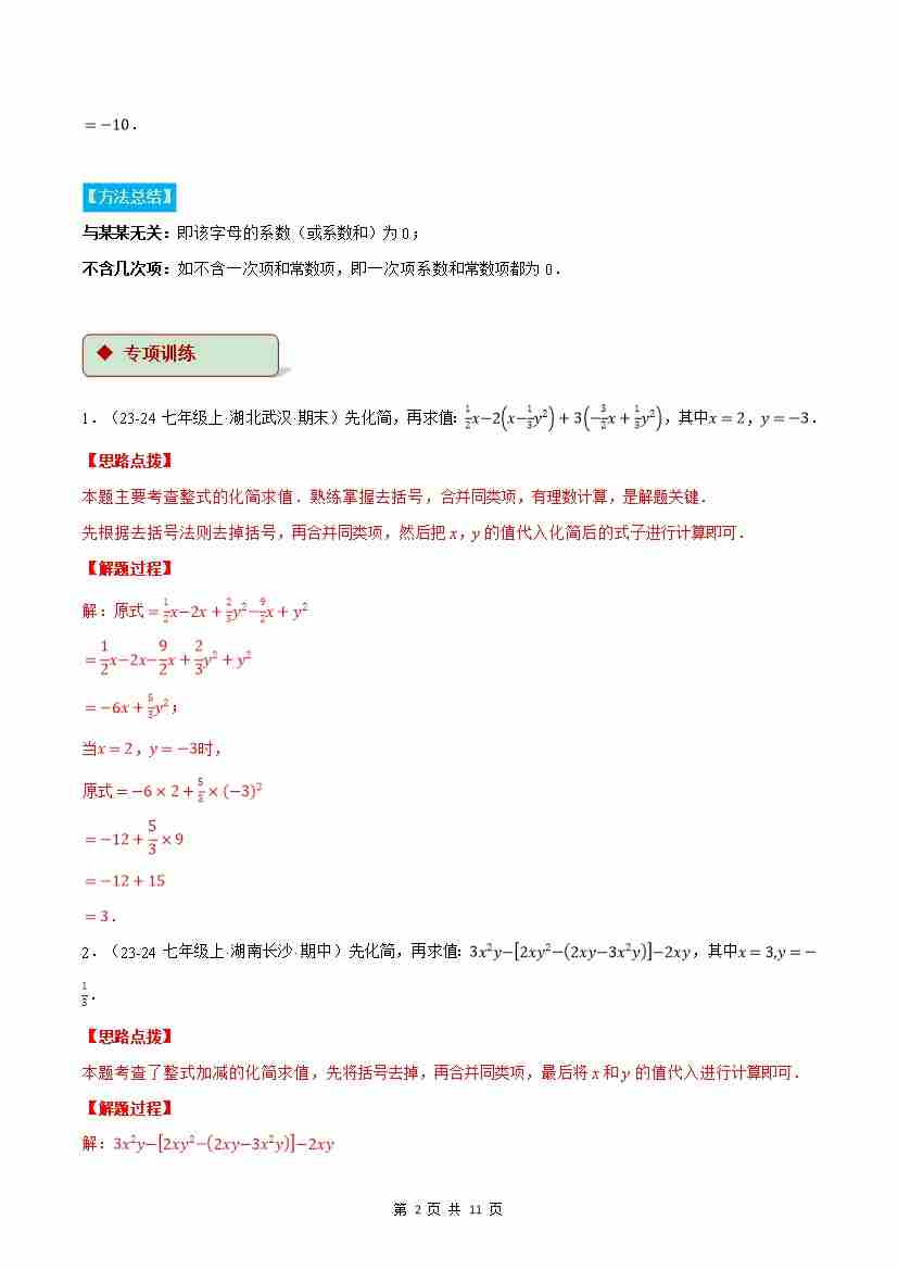 首页 > 全部 > 计算题专练 > 专题06 整式加减中的化简求值(计算题专项训练)(湘教版2024)(解析版)