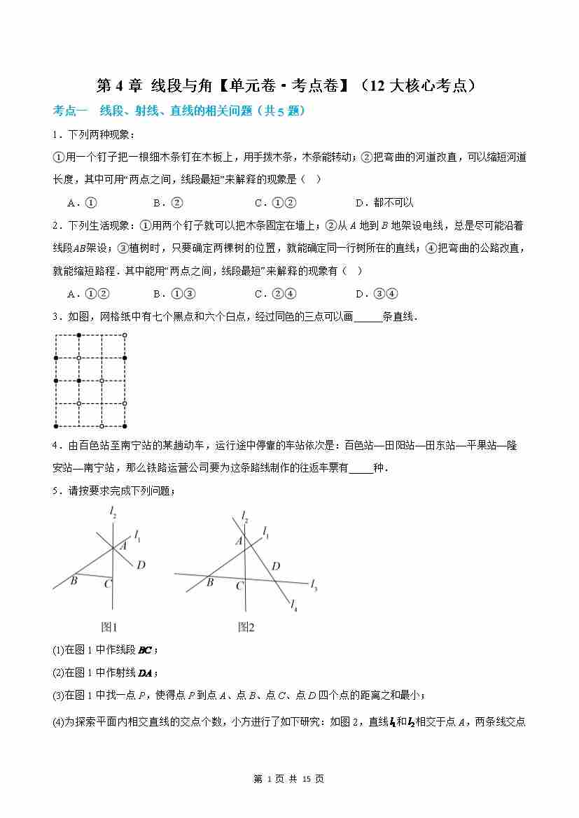 首页 > 全部 > 单元AB卷 > 【沪教】第4章:线段与角【单元卷·考点卷】(12大核心考点)(原卷版)