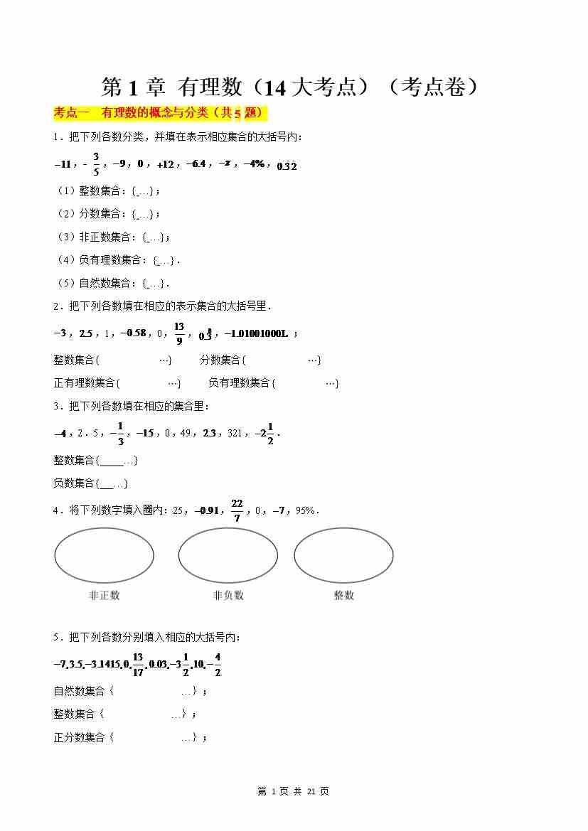 首页 > 全部 > 单元AB卷 > 【沪教】第1章:有理数【单元卷·考点卷】(14大核心考点)(原卷版)