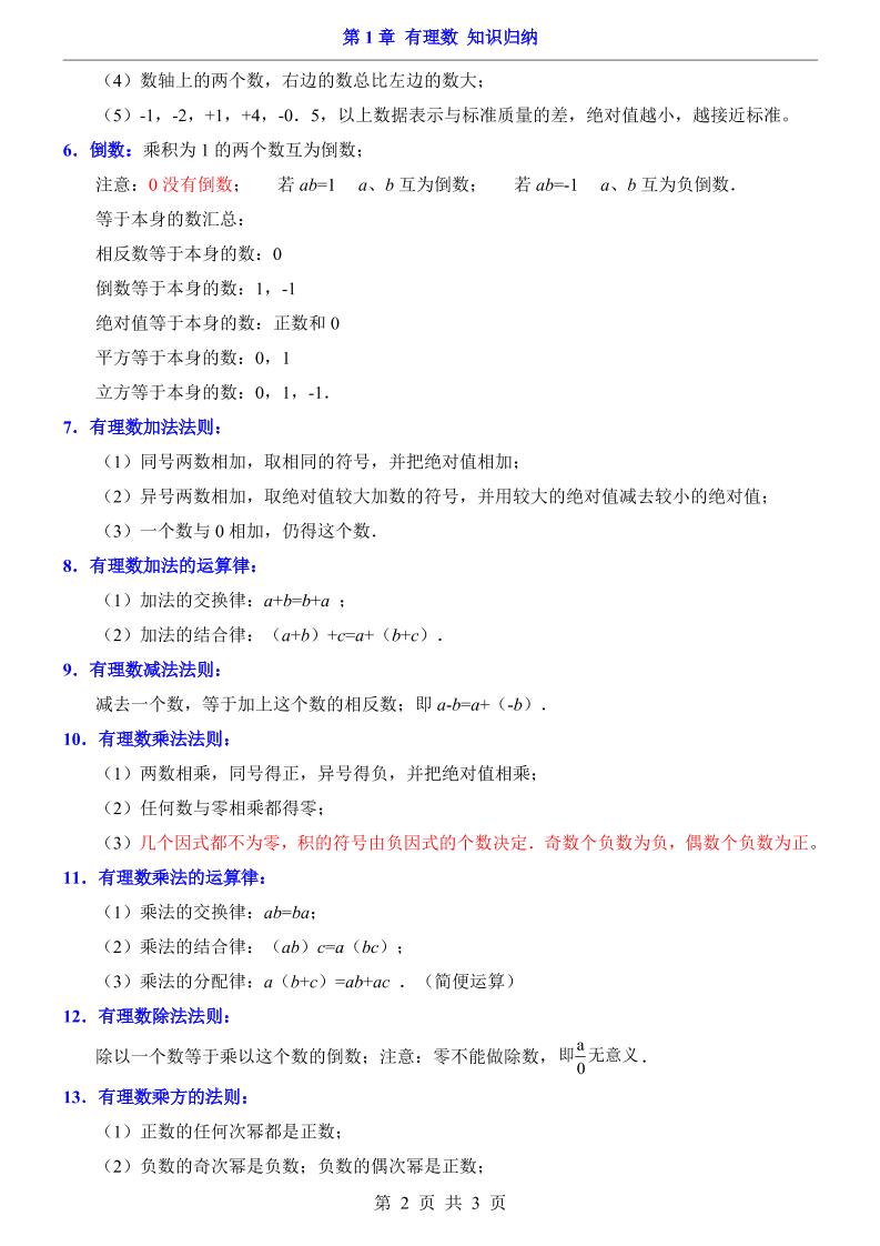 首页 > 全部 > 知识梳理 > 第1章 有理数(知识归纳)-