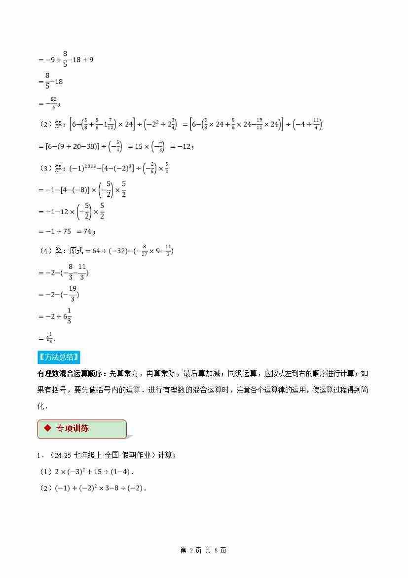 首页 > 全部 > 计算题专练 > 专题04 有理数的混合运算(计算题专项训练)(湘教版2024)(原卷版)