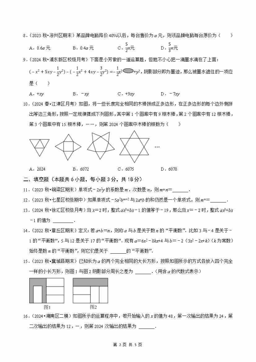 首页 > 全部 > 单元检测 > 第4章 代数式(原卷版)